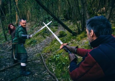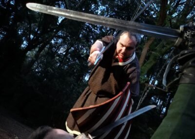 Nuestra esgrima medieval escénica ofrece una experiencia única y emocionante para todo tipo de eventos. Participamos en ferias medievales, recreaciones históricas, y producciones cinematográficas, llevando la autenticidad y el dramatismo del combate medieval a tu audiencia.